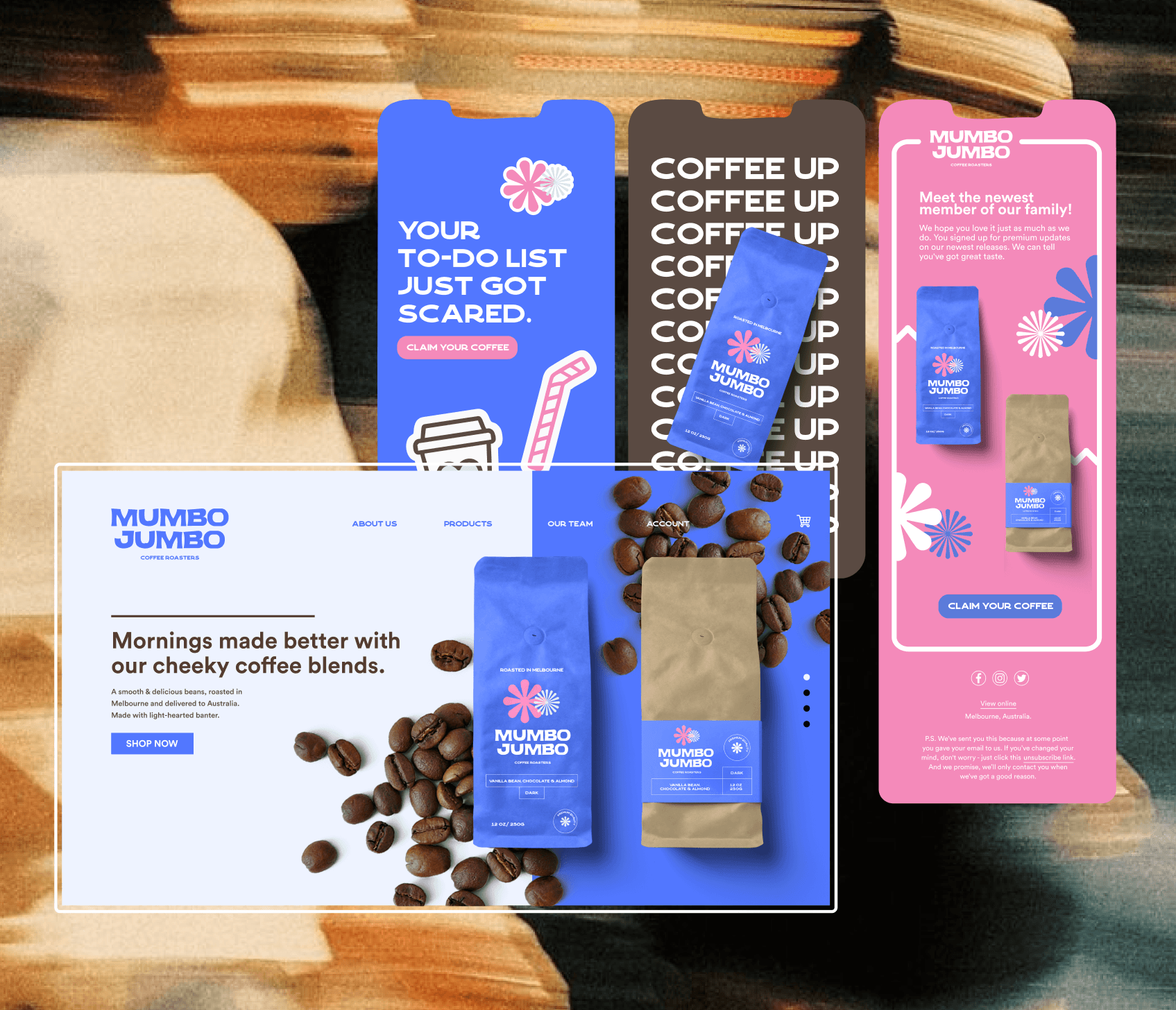 Our journey began with an in-depth exploration of Mumbo Jumbo's ethos—bold, playful, and unapologetically cheeky. We delved into the nuances of coffee culture, identifying a gap for a brand that combined premium quality with a sense of humour. This research phase was pivotal in shaping a brand identity that resonates with a diverse audience, from casual coffee drinkers to connoisseurs seeking a touch of levity in their daily brew.